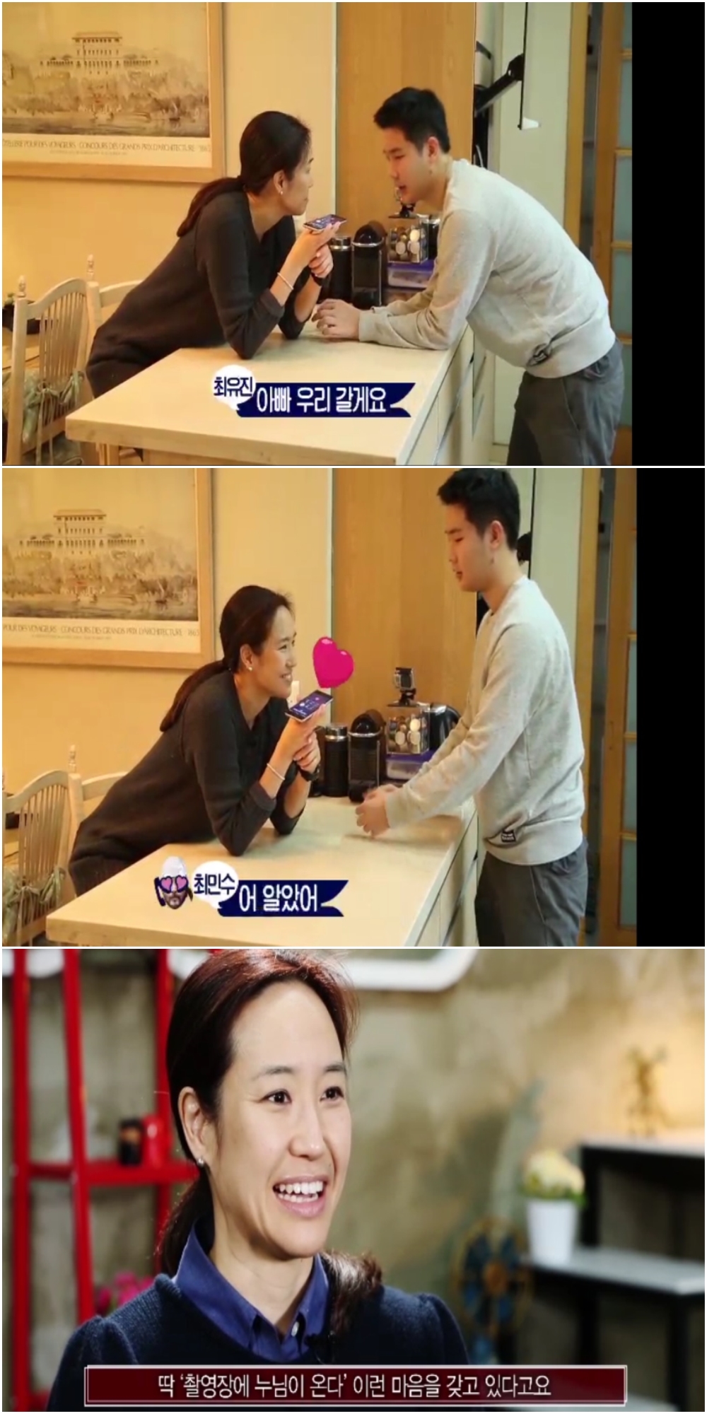 둘째아들 유진에게 아빠의 드라마 촬영 모습을 보여주고픈 강주은은 최민수에게 촬영장을 가고 싶다고 하지만 최민수는 거부감을 보인다. 남편의 달갑지 않은 반응에 강주은은 둘째 아들 유진이에게 “‘아빠 우리 갈게요’ 라고 해”라며 지령을 내리고, 최민수는 아들의 요구에 즉시 “어 알았어”라고 순순히 응한다.