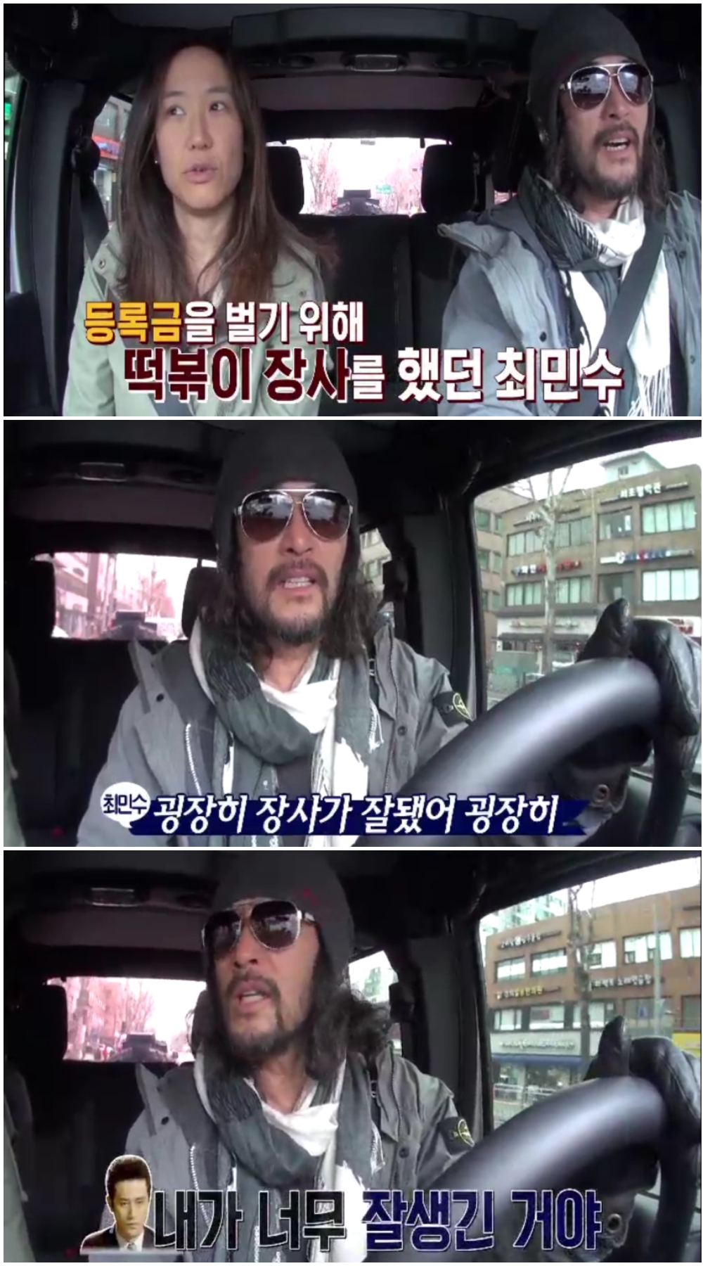 장보기에 나선 최민수는 요리 대결음식으로 떡볶이를 선택한 이유에 대해 “대학생 시절 등록금을 벌려고 수영장에서 떡볶이 장사를 했다. 장사가 정말 잘됐다”라며 떡볶이 요리에 대한 자신감을 말하는 듯 보였다. 하지만 “손님이 많았던 건 수영장에 여대생과 여고생이 많아서였다. 내가 너무 잘 생긴거야. 그래서 장사가 너무 잘됐다”라며 뜬금없는 외모 자화자찬을 한다.