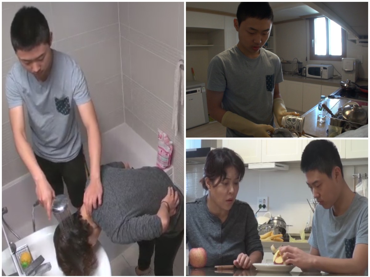 오른쪽 손목을 다친 혜련이 우주에게 도움을 요청하고 우주가 마지못해 엄마의 청을 들어준 것이다. 우주는 툴툴거리며 설거지를 하고 사과가 먹고 싶다는 헤련의 말에 감자칼로 사과를 깎는 신공을 발휘한다.