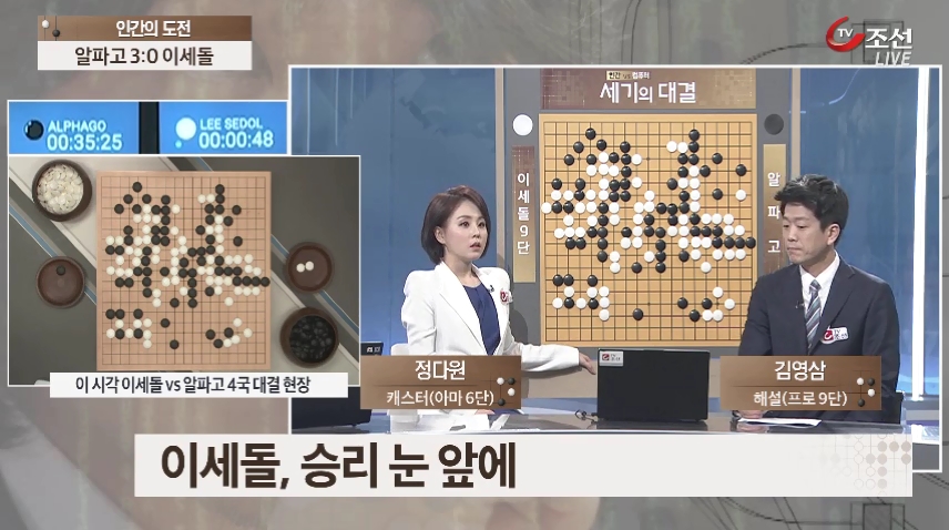 3국과 4국 전 경기를 생중계한 TV조선은 15일(화) 마지막 5국도 오후 12시50분부터 전체 대국을 생중계한다.(끝)