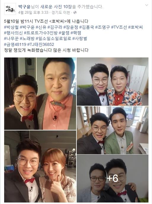 최근 TV조선 <호박씨> 녹화를 마친 박구윤은 자신의 SNS에 녹화 현장에서 직접 촬영한 사진과 함께 녹화 소감을 올리며 셀프 홍보를 선보였다.