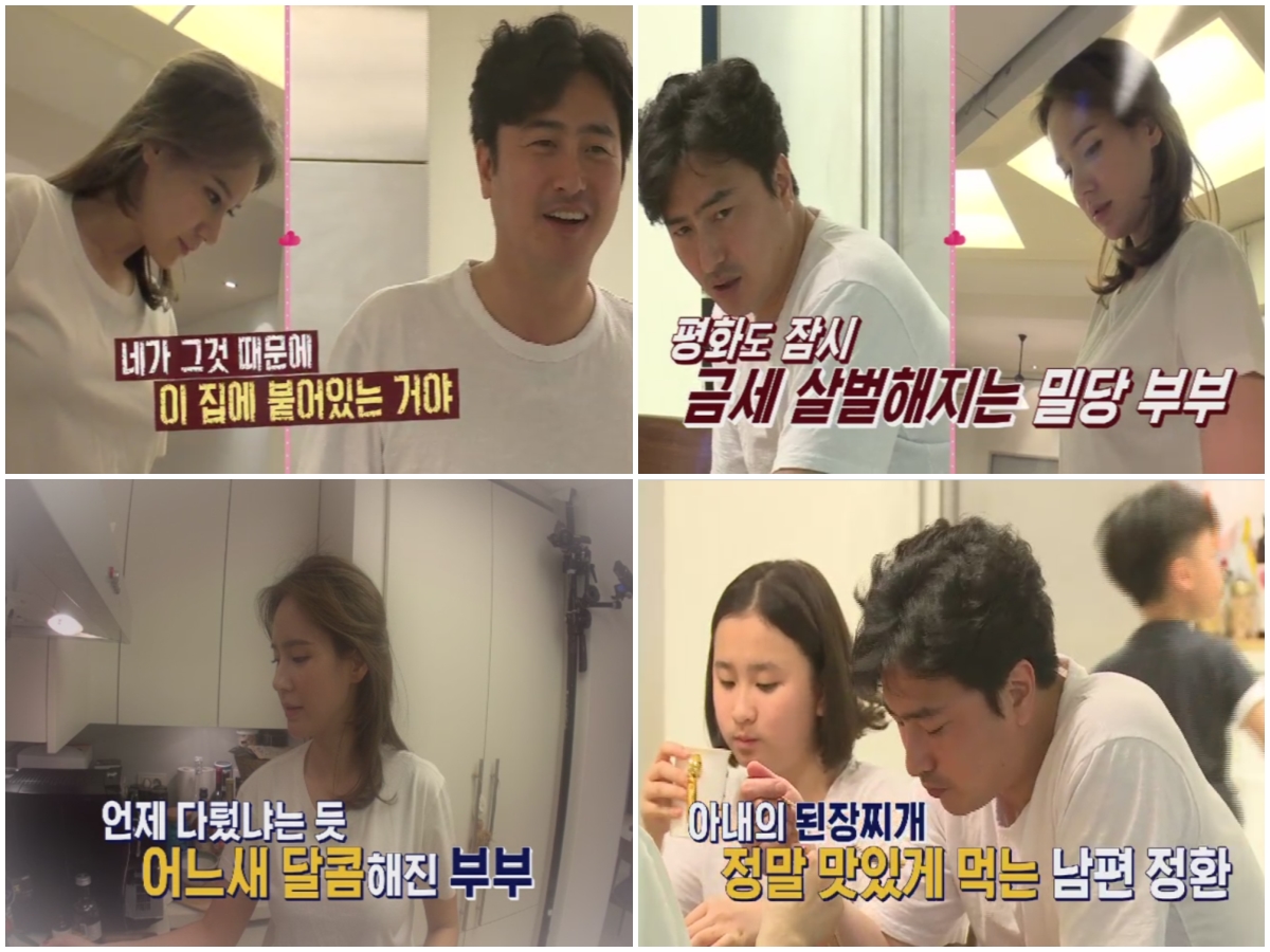 오늘(12일) 방송에서도 안정환은 이혜원이 “아들 리환이 목욕 좀 시켜달라”고 부탁하자 “목욕은 이틀에 한 번 씻기면 된다”며 목욕시키기를 거부해 금세 살벌한 분위기를 조성한다. 하지만 잠시 후 자신을 위해 된장찌개를 끓인 이혜원에게 “(간을) 안 봐도 100% 맛있다. 십몇 년을 먹어도 간이 딱 맞다”며 달콤한 폭풍 칭찬을 해 이혜원을 사르르 녹게한다.