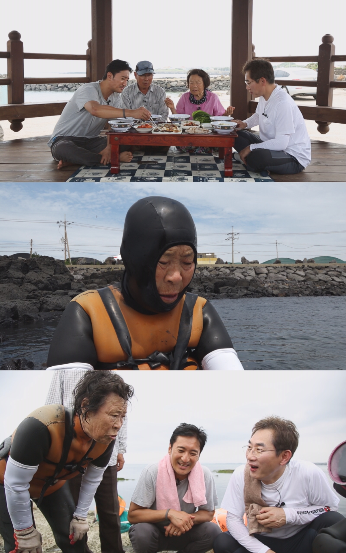 심기일전, 새로운 마음으로 주인공을 찾아가던 배우 신현준 앞에 나타난 것은 망부석처럼 묵묵히 서있는 한 남자. 말을 걸어도 바다에 시선을 고정한 채 대꾸가 없다. 뭔가 걱정이 있는 듯 바다만 바라보고 있는 그는 주인공의 ‘보디가드’ 고원한(77)씨. 잠시뒤 바다에서 떠오르는 주인공! 14살부터 33년간 바다에 터를 잡아 살아가는 해녀 오춘생(77)씨다.