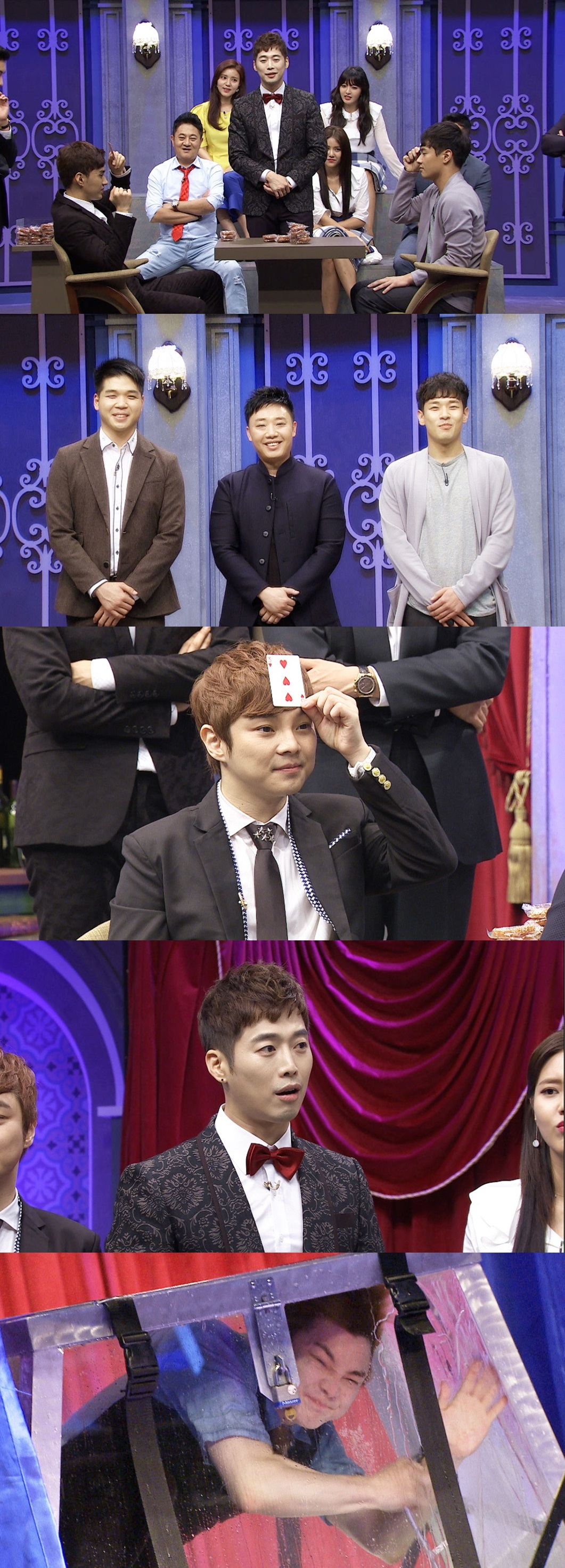 한편, 이날 국민 마술사 최현우가 목숨을 건 새로운 ‘탈출 마술’을 시도한다. 두 손을 자물쇠로 잠근 뒤 60초 안에 물이 가득한 수조를 탈출하는 마술. 최현우는 ‘숨을 쉴 수 없는 물 속’이라는 특수한 공간과 ‘두 손을 쓸 수 없는 극한 상황’, 그리고 ‘높아진 수압’ 때문에 아찔함을 자아낸다. 결국 제한시간 10초를 남기고도 수조를 탈출하지 못해, 스태프가 무대로 뛰어 들어간 것으로 알려져 이 마술의 성공 여부에 대해 모든 사람들의 초미의 관심이 집중 되었다는 후문이다.