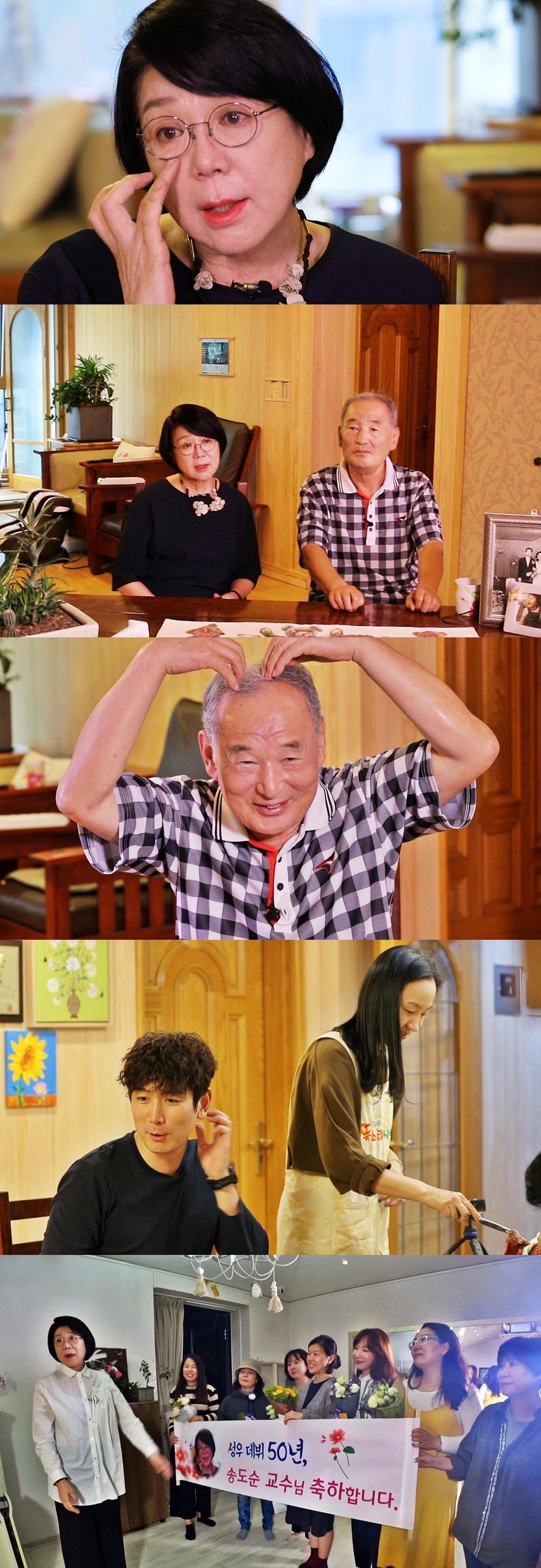 한편 송도순은 대학교수 시절 가르쳤던 제자들과 17년째 함께하는 모임에 제작진을 초대했다. 개그우먼 이경애를 필두로 한 모임의 이름은 ‘송도순을 사모하는 사람들' 일명 '송사모'다. 제자들이 그녀 몰래 데뷔 50주년 축하파티를 준비하고, '스승의 은혜'를 합창하자 그녀는 주체할 수 없는 눈물을 흘렸다는 후문이다.