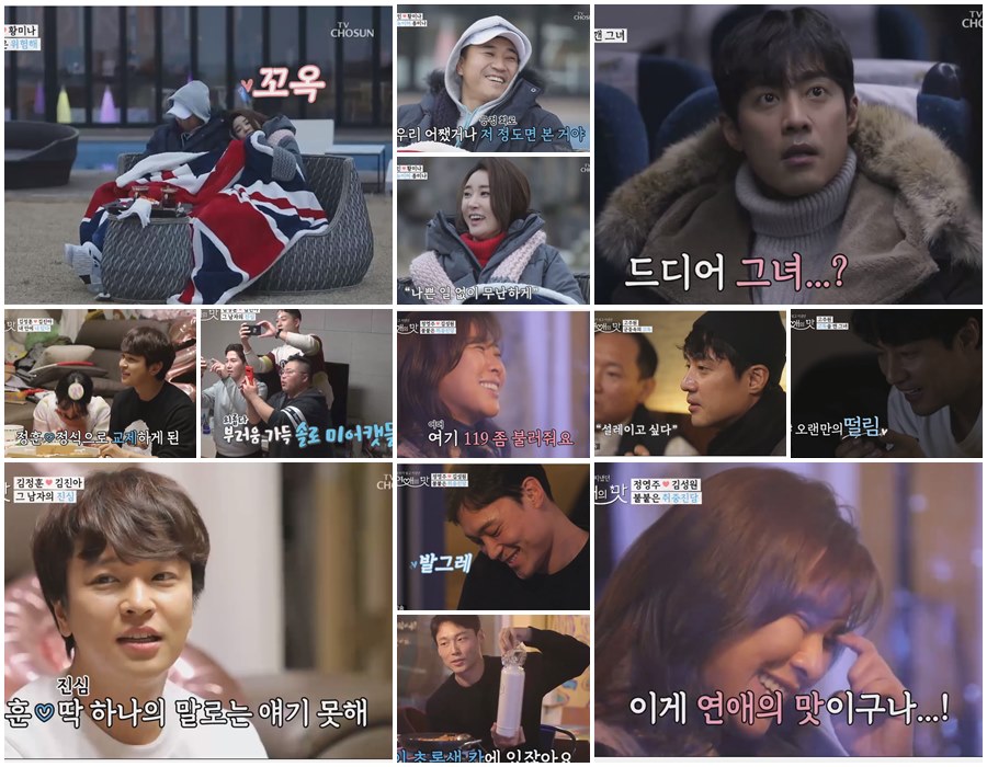 지난 10일 밤 11시에 방송된 TV CHOSUN 예능 연애 리얼리티 프로그램 ‘연애의 맛’ 17회 방송분은 시청률 5.2%(닐슨코리아 유로방송가구 수도권 기준)를 기록, 동시간대 종편 시청률 1위를 수성했다. 김종민-황미나가 한 담요를 덮고 2019년 소원을 빌었던 ‘제주도 일출 여행기’, 고주원의 조심스러운 진심으로 마련된 ‘기차역 첫 만남’, 김정훈-김진아의 시끌벅적하고 달달했던 ‘신년회 홈파티’, 정영주-김성원의 솔직한 이야기가 오갔던 ‘포차 데이트’가 공개되며 간질간질한 떨림을 선사했다.