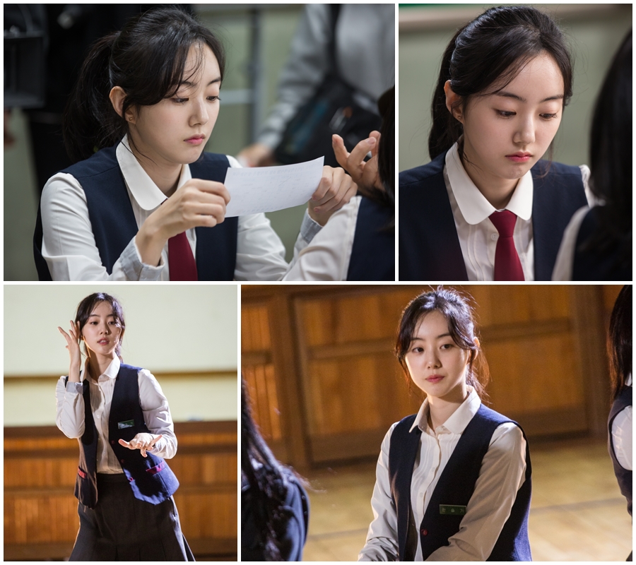 이런 가운데 박세완이 투명한 민낯의 교복 차림으로 남다른 ‘총기 아우라’를 뿜어내고 있는 것. 반 친구들이 모의고사 성적표를 받아 들고 괴로워하는 가운데, 한슬기는 다소 심드렁한 표정으로 전교 1등 성적표를 확인하고 있어 흥미를 더한다. 반면 친구들과 댄스 연습에 매진하는 모습에서는 또래들과 다름 없이 밝은 에너지를 내뿜으며, 교내 댄스동아리 리더로서의 위엄을 드러낸다.