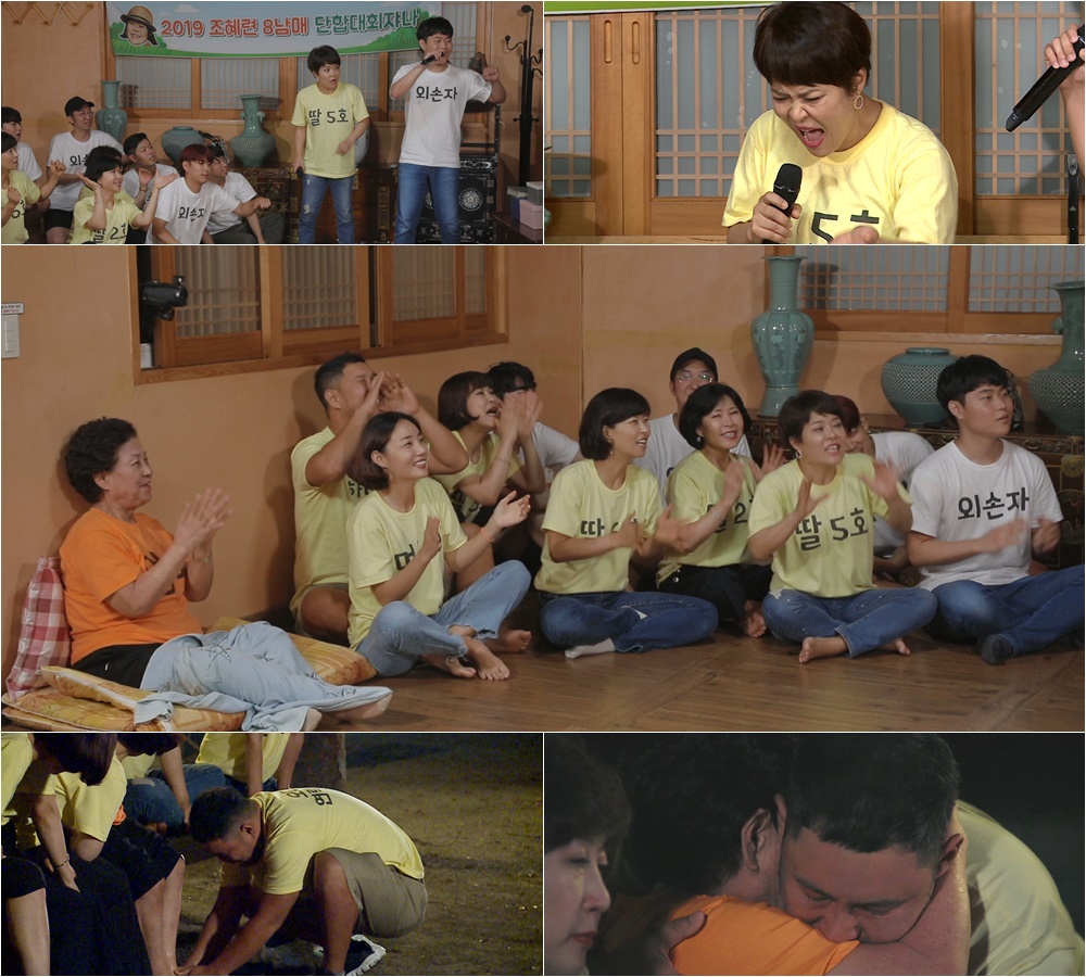 '단합대회의 꽃' 가족 노래자랑 시간도 마련됐다. 상금으로 한돈 세트가 걸려 있어 분위기는 더욱 달아올랐다. 최복순 여사의 엇박자 노래를 시작으로 부산 큰언니 아들의 맛깔나는 '자옥아', 우아함이 흘러넘치는 둘째 언니의 아들의 가수 뺨치는 노래 등 가족들이 숨겨왔던 끼를 뽐냈다. 조용했던 조카들의 수준급 노래 실력에 "트로트 가수가 탄생하는 것 아니냐"라며 현장에 있던 모든 이들이 입을 모아 칭찬했다. 이에 위기의식을 느낀 조혜련의 아들 우주는 비장의 카드 '아나까나'를 꺼냈고, 목이 아프다던 조혜련은 14년 만에 '아나까나' 라이브를 선보였다.