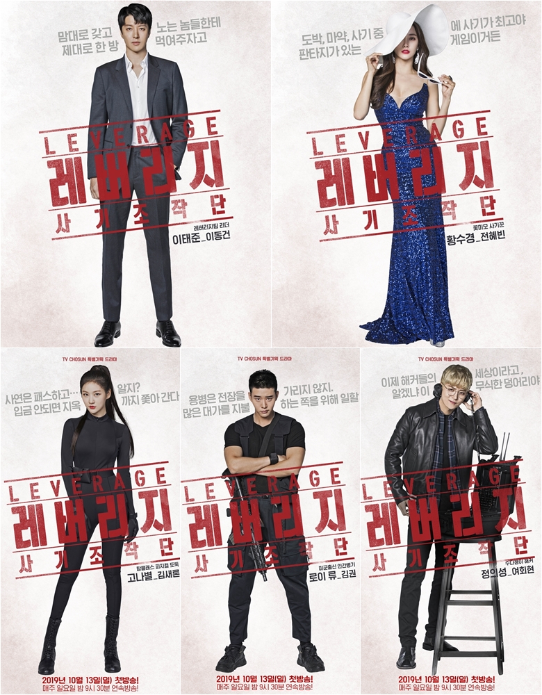 터는 선수들의 정의구현 사기극 ‘레버리지:사기조작단’은 10월 13일(일) 밤 9시 30분에 TV CHOSUN에서 첫 방송된다.