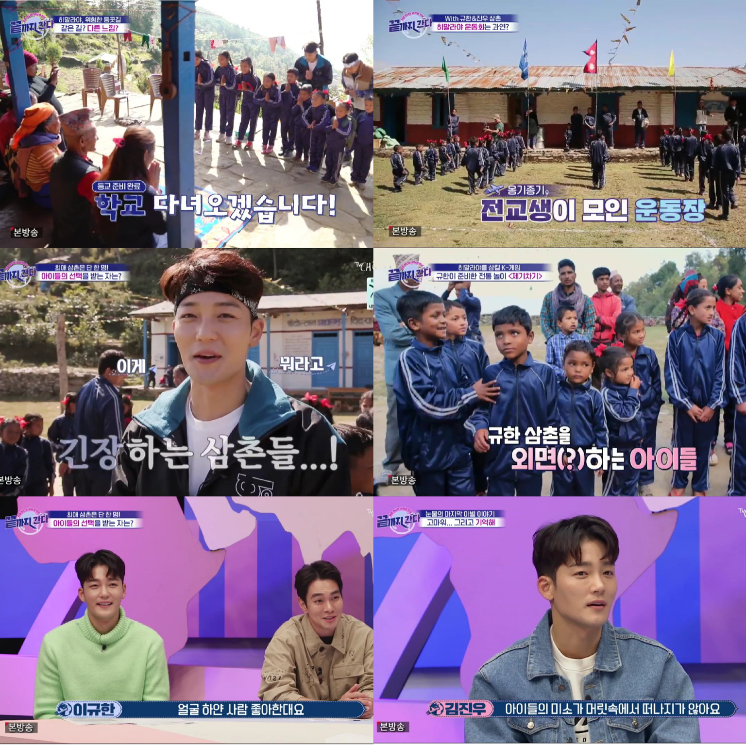 17일 방송된 TV CHOSUN ‘끝까지 간다’ 3회의 코너 ‘학교 가는 길’에서는 이규한&김진우의 히말라야에서의 마지막 등하굣길과 불꽃 튀는 자존심을 건 운동회, 70인분의 닭요리 파티 등 고산지대에서의 마지막 시간이 그려졌다.
