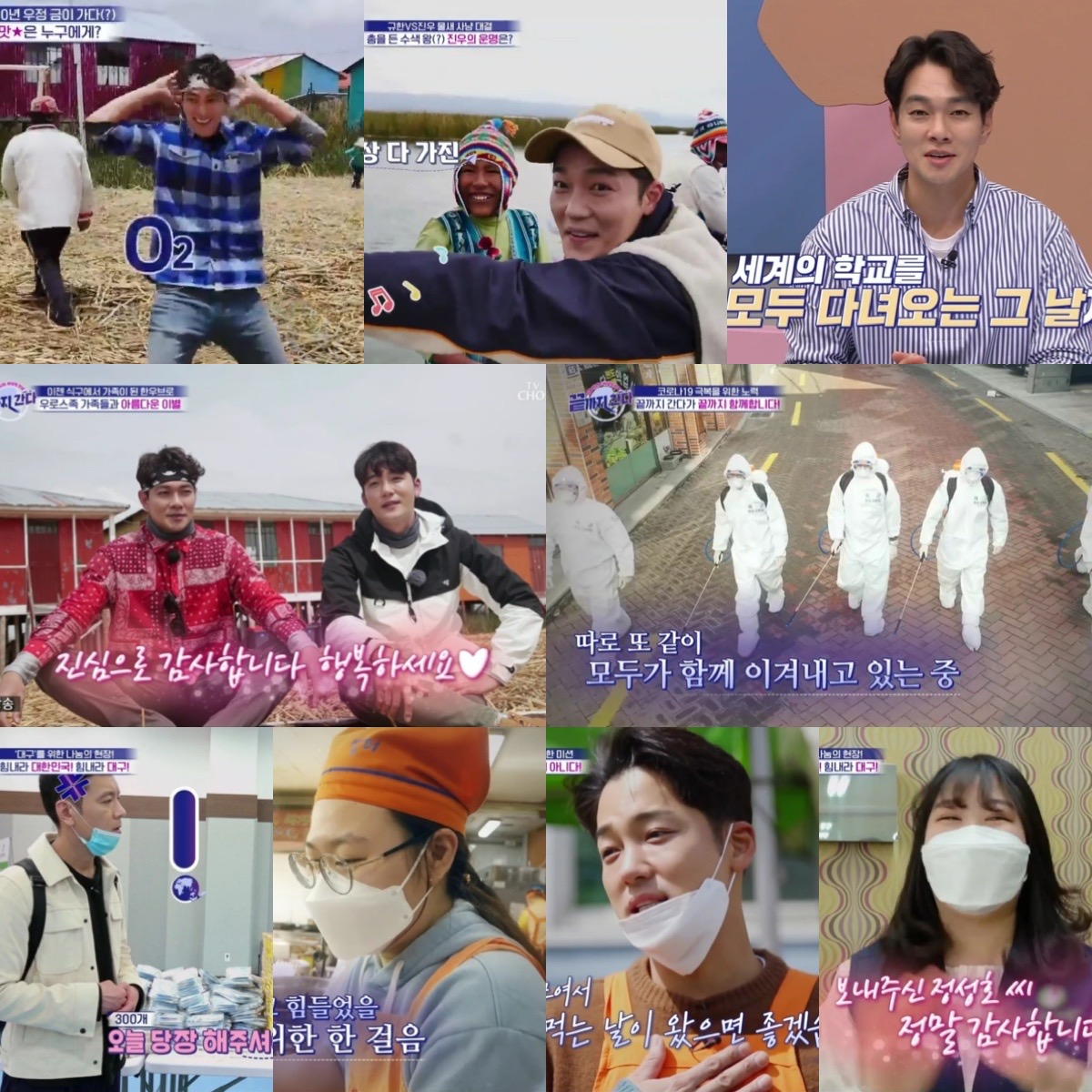 TV CHOSUN이 선보이는 신개념 다큐테인먼트 ‘끝까지 간다’의 이규한&김진우가 하늘에서 가장 가까운 호수 티티카카에서 장사의 신&요리왕&사냥왕(?) 등 다양한 타이틀을 획득하고 우로스족들과 작별했다. 또 ‘극한 체험 전문가’ 정성호와 ‘기부천사’ 김진우는 전세계를 강타한 코로나 19 확산 속에서 괴로워하는 이웃들을 위한 ‘코로나 300’ 프로젝트를 실행, 금요일 밤을 훈훈하게 장식했다.