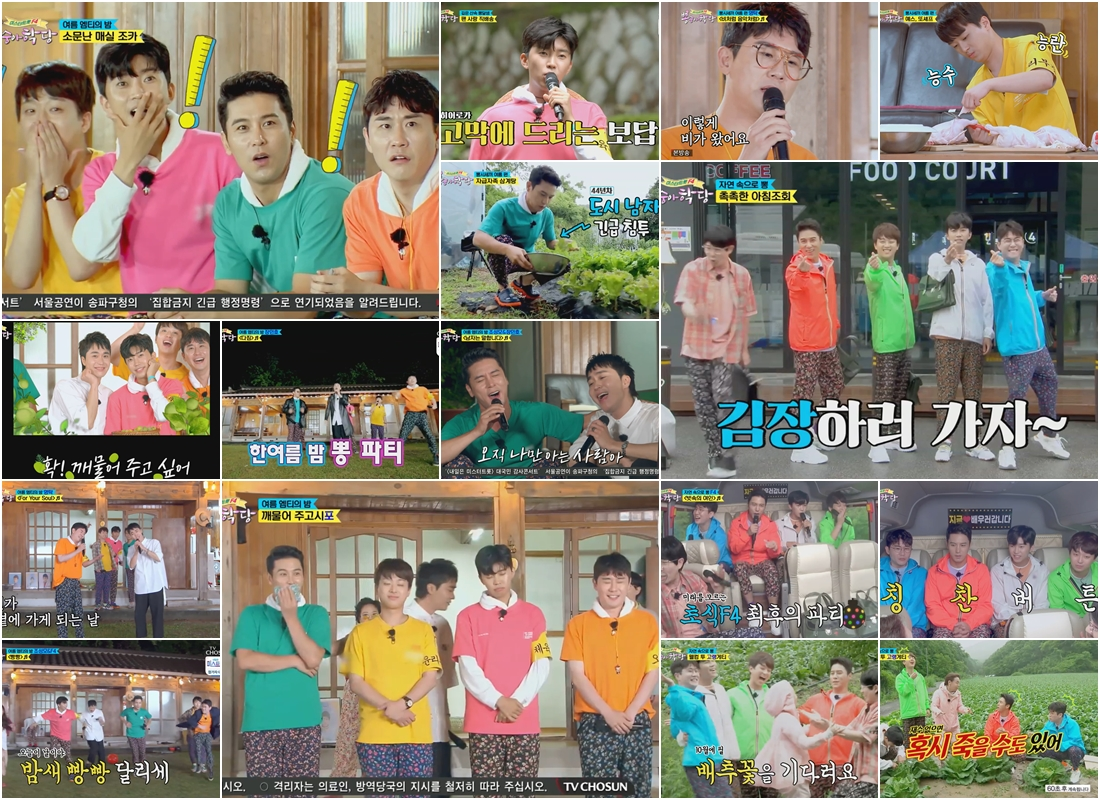 그런가하면 며칠 뒤 장마가 계속되는 와중에도 트롯맨 F4는 가정통신문에 따라 일바지를 입고 평창 휴게소로 등교, 강원도 해발 700m 대자연 심화학습을 위해 ‘스쿨 뽕 버스’에 올랐다. 그리고 고랭지 배추밭을 통 대관, 김치 1타 강사를 초빙했다는 소식을 들었던 것. 기다리는 강사를 향해 ‘빗속의 연인’을 부르며 달려간 트롯맨 F4는 손맛 장인 김수미 등장에 반가움을 토해냈고, ‘수미네 배추밭’에서 배추를 수확 후 김장을 하러 떠났다. ‘첫 가정 과목 클래스’에서 트롯맨 F4가 펼칠 기상천외 요리 시간에 기대가 쏠리고 있다.
