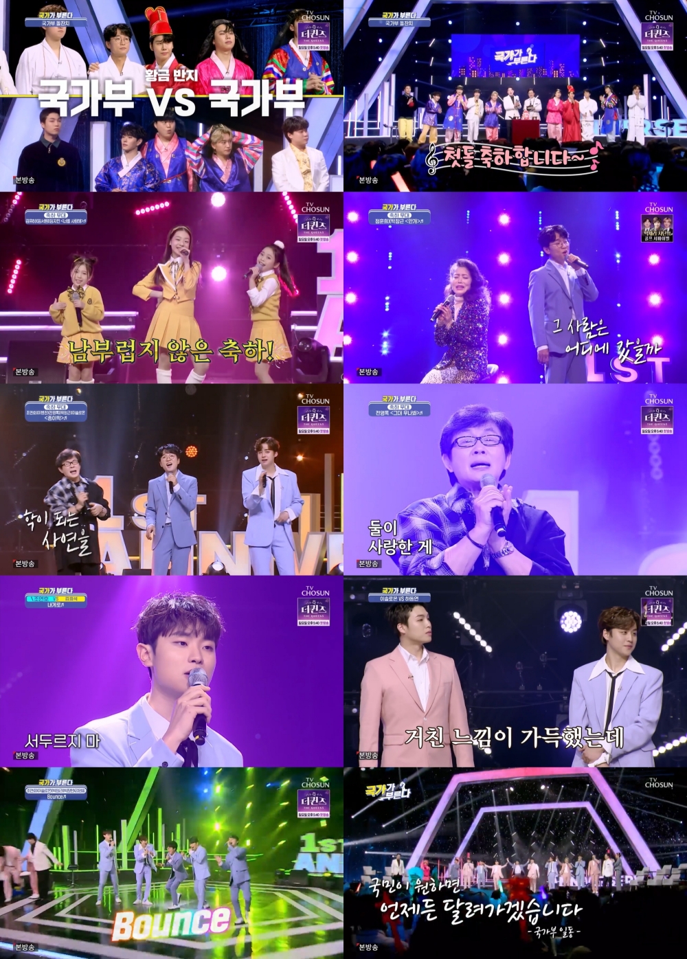 2월 17일 방송된 TV CHOSUN 예능 프로그램 ‘국가가 부른다’ 48회는 ‘1주년 특집’으로 꾸며져 레전드 가수들의 축하무대부터 치열한 집안 싸움까지 시청자들에게 ‘꿀잼’을 선사하며 훈훈하게 마무리했다.