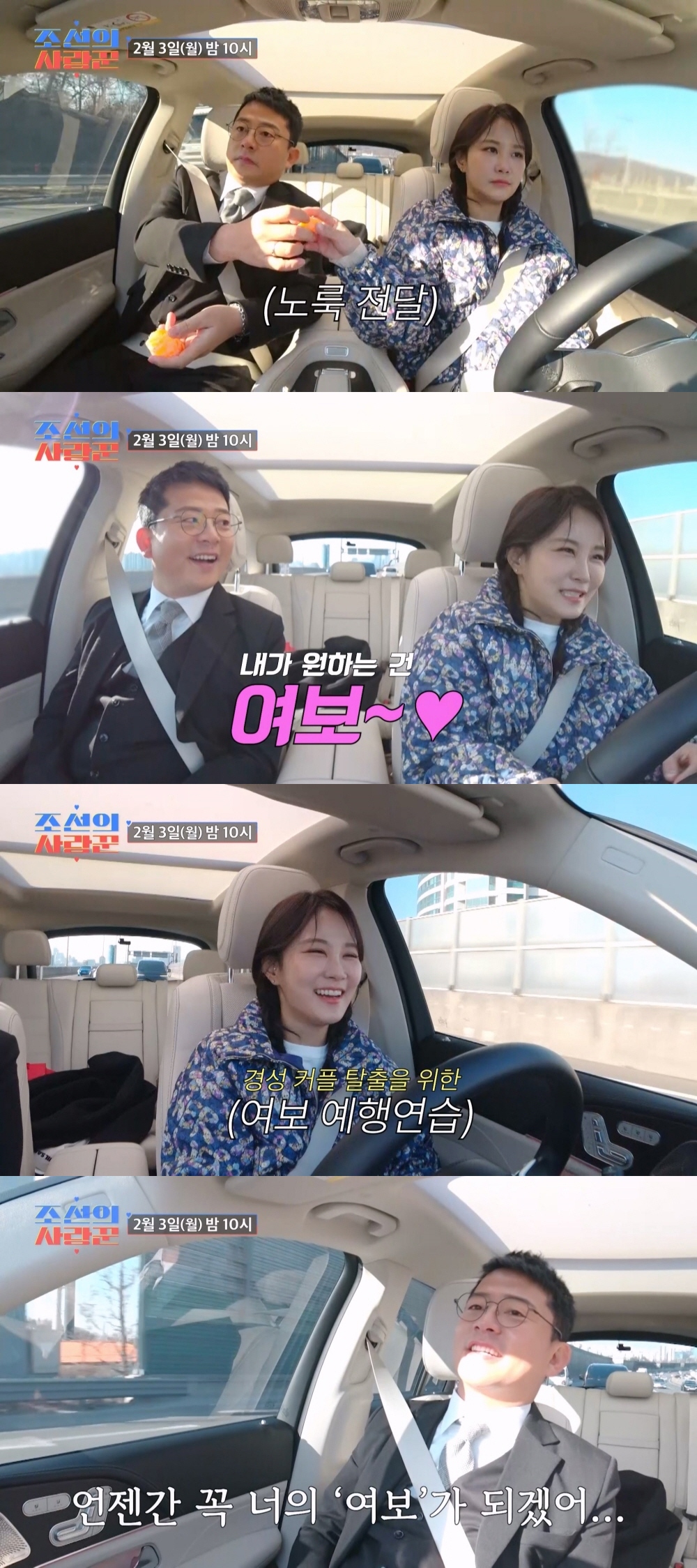 3일 방송될 ‘조선의 사랑꾼’에서는 김지민♥김준호가 김지민의 아버지가 잠든 동해로 함께 떠난다. 정장을 갖춰 입고 한껏 멋 부린 김준호는 운전대를 잡은 김지민에게 직접 귤을 까주는 '외조男' 모멘트로 설렘을 유발했다. 이를 본 '원조 사랑꾼' 최성국도 "조수석에서 역할을 잘하신다"며 칭찬을 아끼지 않았다. 그러나 김준호는 김지민에게 주고 남은 귤의 반 이상을 한입에 털어먹으며 분위기를 깼고, 이후 김지민은 "나 세 개 주고 다 먹은 거야?"라며 김준호를 타박해 웃음을 선사했다.