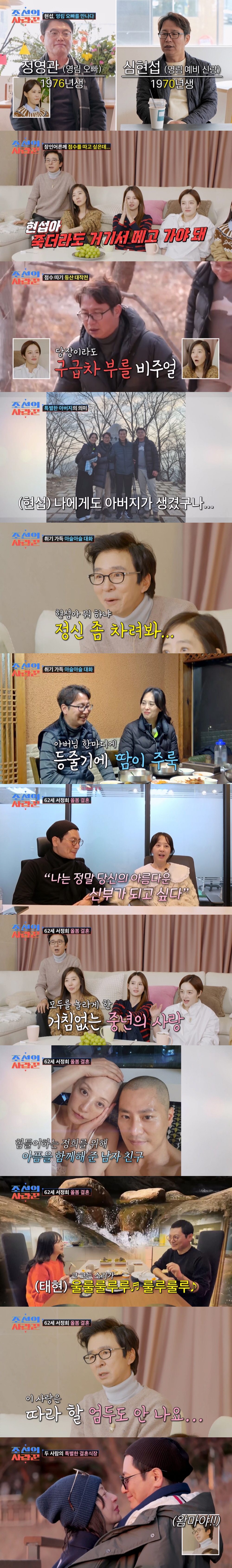 10일 방송된 ‘조선의 사랑꾼’에서는 드디어 결혼 승낙을 받은 심현섭이 예비 장인어른과 더 친밀해지기 위해 여자친구 영림의 오빠에게 도움을 구했다. 심현섭의 ‘예비 형님’은 순순히 ‘아군’이 되어 줬지만, 여동생의 연애를 직관하며 눈을 질끈 감아 웃음을 자아냈다. 강수지도 "형님 뛰쳐나가게 생겼다"며 못 말리는 심현섭 커플의 닭살 행보에 고개를 저었다.