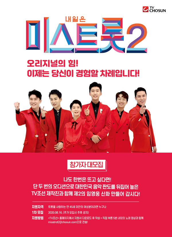 프레스룸 핫이슈 프로그램 오늘의 프로그램 프로그램 사진 자료 공지사항 [미스트롯2] 모집 지면광고-2 2020.08.06 이전 [미스트롯2] 모집 5단 지면광고-1 2020.08.06 다음 [미스트롯2] 모집 5단 지면광고-2 2020.08.06 목록