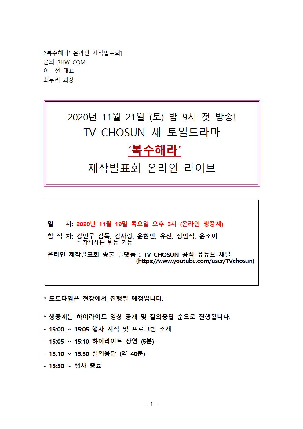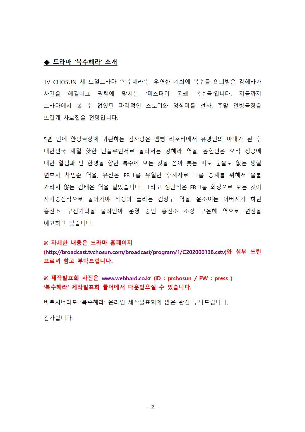 [공지] 토일드라마 <복수해라> 온라인 제작발표회