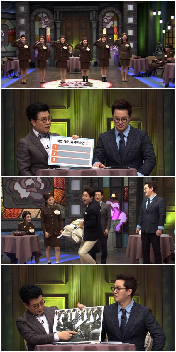 또 스튜디오에는 전쟁 시 핵이 든 배낭을 메고 적진에 뛰어든다는 자살특공대, 고사포 중대에서 80kg에 육박하는 탄알을 10초 안에 장전하던 장탄수, 특별대우를 받았던 예체능 여군 출신이 출연해 여군 당시 일화를 털어놓는다.