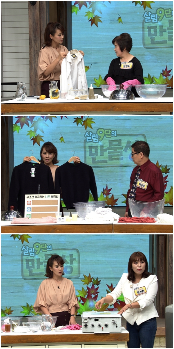 주부 9단들도 세탁하기 힘든 가을&겨울옷! 이러한 고민을 해결해 주기 위해 대한민국 세탁 3대 천왕이 만물상을 찾는다. 그 첫 번째 주자는 천연 세탁 전문가 정영숙 살림9단. 정영숙 살림9단은 과거 한포진과 화농성 습진으로 고생한 경험을 바탕으로 천연 세제 연구에 더욱 열중해 왔다고 밝히며 직접 개발한 천연 마법 세제를 소개한다. 정영숙 살림9단은 “레몬껍질과 베이킹소다를 넣고 만든 물비누는 기름때와 김칫국물 등 지우기 어려운 때를 한 번에 지워주고, 세탁과 보관을 잘못하여 황변에 곰팡이가 생긴 옷은 과탄산나트륨과 과산화수소수를 섞은 세탁물에 담그면 1분 만에 새 옷처럼 돌아온다”고 말해 출연자들을 깜짝 놀라게 한다.