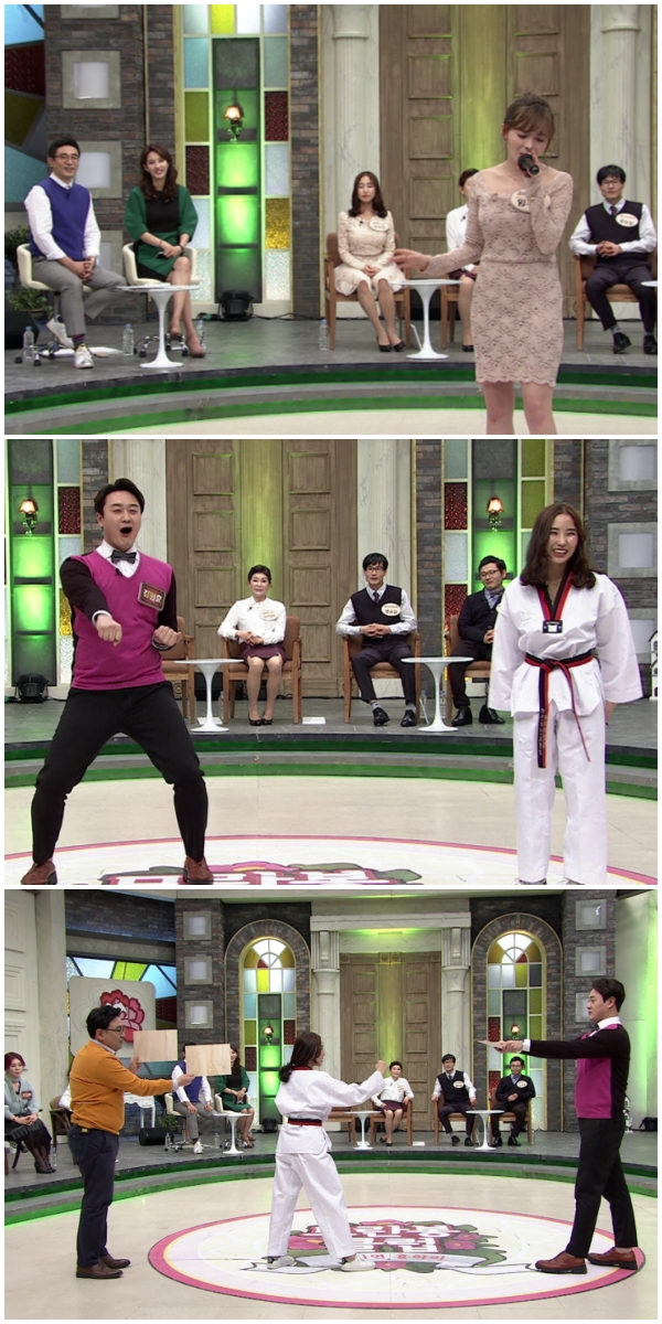 이에 장유정은 북한식 태권도를 선보인다. 남한 태권도와 달리 기합 대신 호흡을 통한 소리를 내며 절도 동작을 보여 눈길을 끈다.