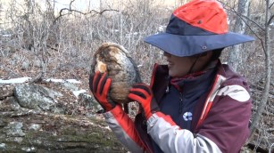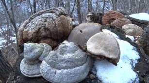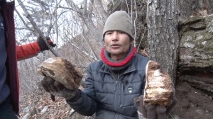 겨울에는 유독 안전문제 때문에 장비 무게만 10kg이고, 탄산수까지 꽁꽁 얼리는 겨울 산 속에서 제대로 된 식사도 못하기 일쑤이다. 가파른 산을 오르다 미끄러지는 보기만 해도 아찔한 상황의 연속이다. 산행이 지칠 쯤 만난 잔나비 불로초 버섯! 사람 얼굴크기 만한 대물 버섯이다. 잔나비 불로초 버섯 역시 항암 버섯으로 알려진 다년생 목재부후균이다.