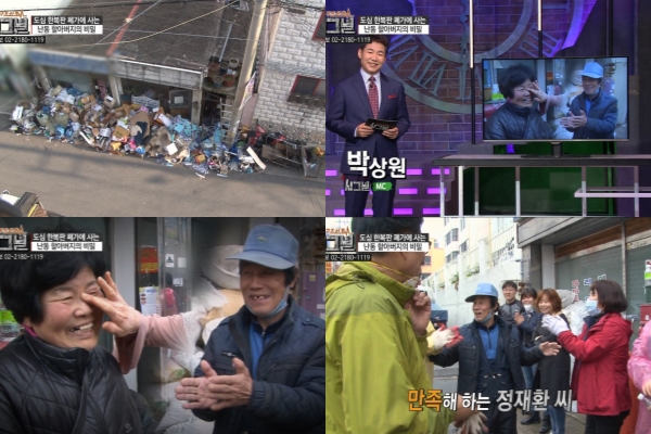 또한 관할구청, 법무부, 자원봉사단체, 지역상인 등의 도움으로 정재환씨의 주거환경개선 사업이 진행됐다. 정재환 씨의 집에서 나온 쓰레기와 고물의 양은 무려 23톤이나 되었다. 지역주민들의 도움으로 새로운 시작을 다짐하는 정재환 씨. 쓰레기 집에서 벗어난 정재환 씨 가족에게 다가올 따뜻한 봄을 기다려본다.