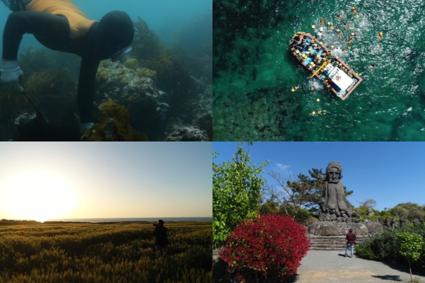 실상은 척박한 삶의 현장. 숨을 참고 바다 깊숙한 곳까지 들어가 해산물을 채취하고는 숨이 끊어질 무렵에야 물 위로 올라 거친 숨을 뱉어낸다.