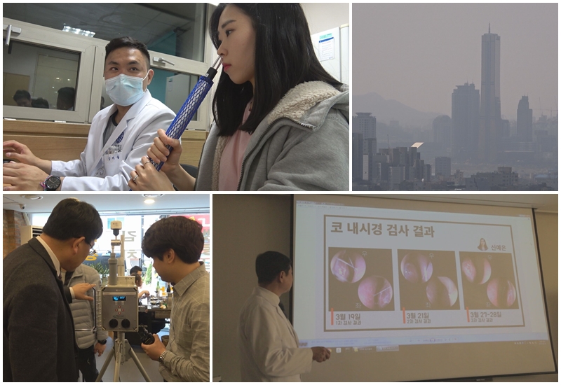 제작진은 강남세브란스병원 이비인후과 김경수 교수팀의 도움을 받아 실험을 진행했다. 실험 참가자 12명을 모집해 40일에 걸쳐 변화를 꼼꼼하게 관찰하고 기록했다. 내시경과 통기성 검사로 실험자들의 콧속 붓기와 코막힘 상태를 살펴보고, 심층 인터뷰를 통해 미세먼지와 싸우는 그들의 목소리를 생생하게 들어봤다. 실험이 시작되고, 미세먼지가 들이닥치자 반응을 보이기 시작하는 실험자들의 코. 빨갛게 부어오르고, 이물질이 쌓이고, 피까지 보인다. 심지어 전문가들은 미세먼지의 공격이 오랜 시간 반복적으로 계속된다면 이 정도로 끝나지 않을 거라고 경고한다.