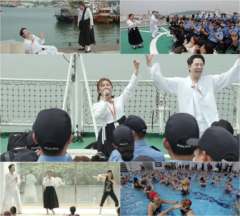 두 사람은 블록버스터급 첫 번째 사연자를 만나러 가기 전 서해 바다의 명물 꽃게 집에 들러 꽃게 5종 세트 먹방으로 든든히 에너지를 충전했다. 큰 기대를 품고 찾아간 인천광역시의 사연자는 이 꽃게를 잡는 황금해역이자 서해 바다의 38선인 서해 북방한계선을 지키는 해양경찰이었다. 장기간 출동해 바다를 지키는 해경 업무의 특성상 일정을 잡기 쉽지 않아 4개월 동안 준비 해 힘겹게 이뤄낸 최대 규모 프로젝트에 붐과 송가인, 해경 모두 긴장했다. 대한민국 해양경찰인 사연자를 만나기 위해 철통 보안을 뚫고 해경 부두로 들어선 붐과 가인은 서로의 신분증을 공개하며 부끄러운(?) 과거를 공유했고, 이를 계기로 한층 더 가까워졌다. 북한과 인접한 대한민국 해상에서 불법 조업을 하는 중국 어선을 단속 중인 사연의 주인공, 3년차 해경 김태호 경장은 10년간의 장기 연애 끝에 올해 결혼에 골인한 새 신랑. 하지만 나라를 위해 달콤한 신혼 생활을 포기 중인 사연을 전해 붐과 가인의 탄식을 자아냈다. 서해 바다에 있는 시간이 대부분인 사연 주인공은 아내에게 미안함과 고마움을 전했고, 송가인은 주인공을 위한 위로송 <님은 먼 곳에>를 열창했다. 이뿐만 아니라 나라를 위해 가족들과의 시간을 희생하고 있는 해양경찰들의 노고를 위로하고 응원하기 위해 거대한 함정 위에서 초대형 선상콘서트를 펼쳤고, 이에 서해 5도 특별 경비단 3008함 해경 50여명은 엄청난 환호로 화답했다.