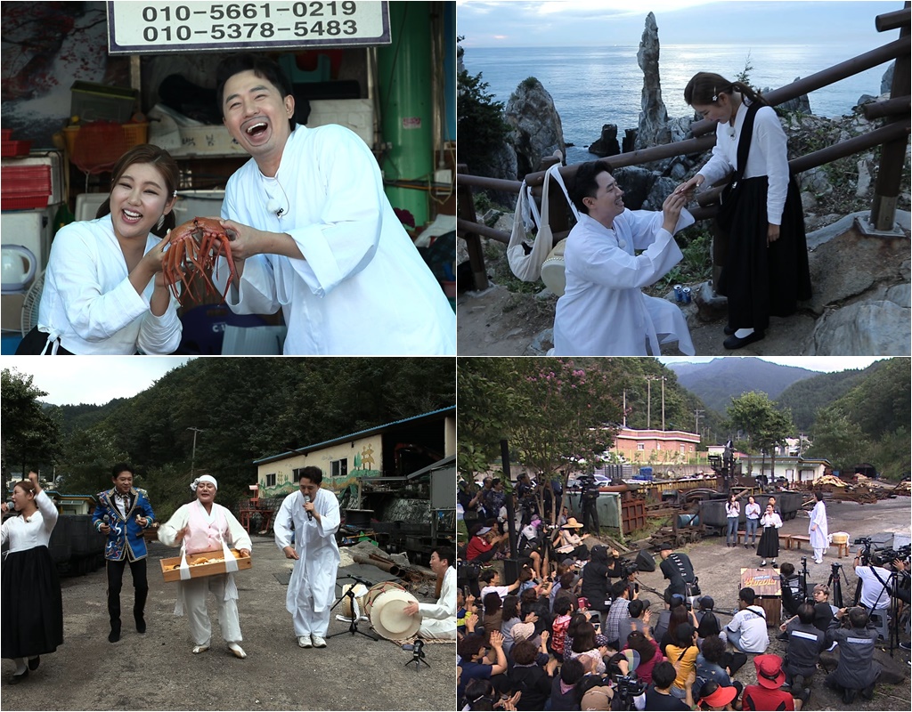 이날 붐은 야심한 새벽, 송가인에게 은밀한 데이트를 제안했고, 이른 아침 연락에 영문도 모른 채 달려온 가인에게 "나랑 해보러 가지 않을래?"라며 해돋이 데이트를 시작했다. 일출을 기다리며 소원 빌 준비를 하던 가인에게 붐은 “내 마음속의 해는 가인이 너야” 라는 달달한 멘트로 이른 아침부터 설렘 폭탄을 던졌다. 두 사람의 해돋이 데이트의 하이라이트는 아름다운 동해바다를 배경으로 무릎을 꿇고 직접 준비한 특별한 반지를 손가락에 끼워주던 붐의 갑작스러운 프러포즈였다. 송가인은 물론 지켜보던 관광객들도 모두 놀랐다는 후문. 프러포즈를 받은 송가인은 붐에게 이상형과 결혼계획을 물으며 호감에 대한 답을 전하는 것으로 보였다. 아이를 좋아하는 여자가 이상형이라는 붐의 말에 “나 아이 엄청 좋아하는데”라고 대답하는가 하면, “아이는 둘만 낳아도 될 것 같다. 쌍둥이를 낳자”며 얼떨결에 두 사람의 자녀 계획까지 완성됐다.
