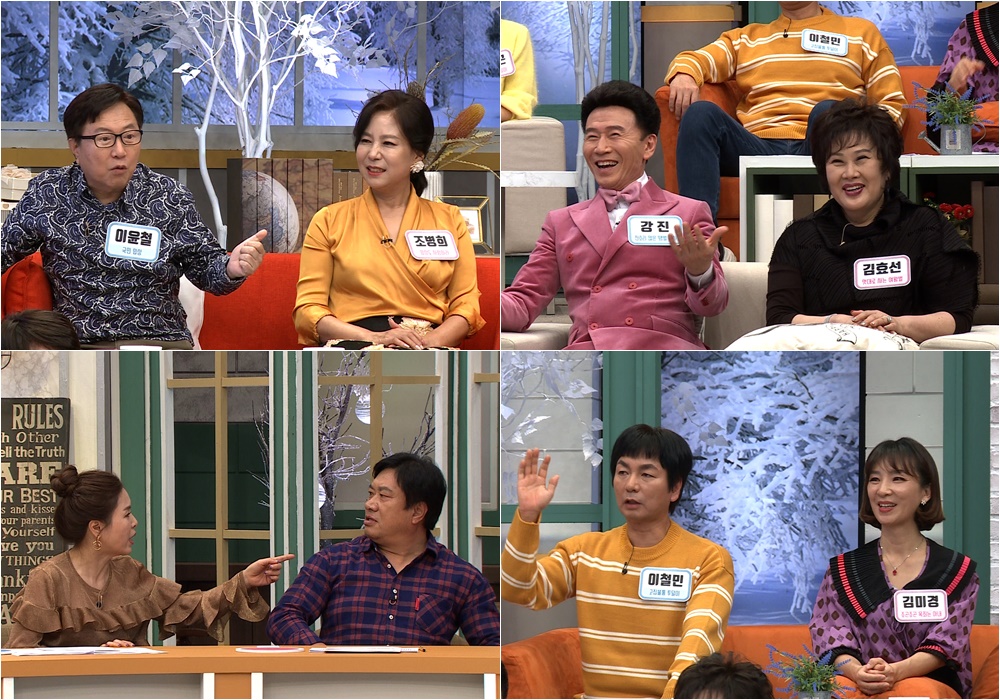 트로트계의 신사 강진과 희자매 출신 김효선 부부도 화려한 입담을 자랑한다. 이날 70~80년대 파격적인 의상을 선보였던 김효선의 희자매 시절 사진이 공개돼 출연자들은 입을 다물지 못했다. 강진은 "우리 집은 바깥사람과 안사람이 바뀌었다"라는 얘기를 하며 "나도 아내 내조를 받고 싶다"고 신세 한탄을 해 웃음을 자아냈다. 지난 116회 방송에서 집에서 청소, 설거지 등 집안일을 도맡아 하고 있다고 말해 '강진 언니'라는 별명을 얻은 강진. 그런 탓에 아들들은 집에 엄마 김효선이 있어도 강진에게 밥을 차려달라고 한다는데. 심지어 행사 도중 아들에게 전화가 와 밥을 차려달라고 했다는 웃픈 이야기를 전했다.