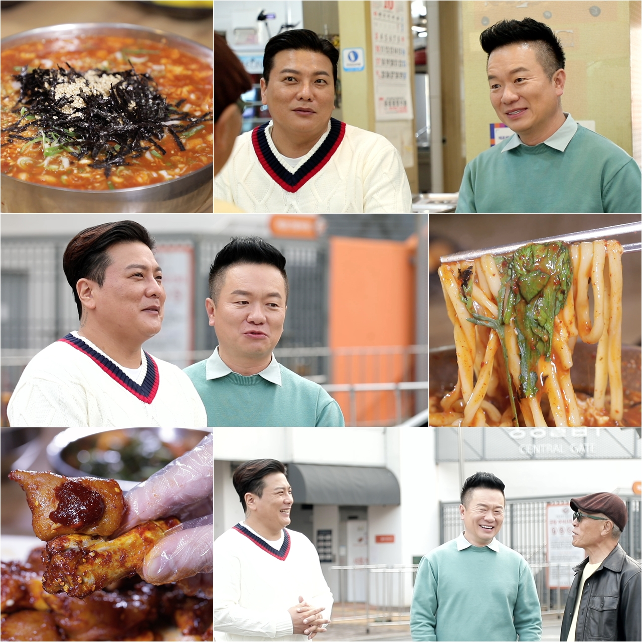 먼저 식객 허영만과 ‘투태균’은 월드 스타 류현진도 즐겨 찾았다는 한밭구장 인근 칼국숫집으로 향한다. 한화 이글스 출신 야구선수 김태균도 “선수 시절 에너지를 충천하기 위해 꼭 들렀다”라며 극찬을 쏟아낸다. 한화 이글스 선수들의 단골 맛집이라는 이곳은 대전의 대표 음식인 칼국수에 매운맛을 더한 얼큰이칼국수와, 두툼한 오겹살을 푹 삶아낸 수육이 별미다. 특히 칼칼한 맛으로 스트레스 풀기에 딱 좋은 얼큰이칼국수는 ‘이것’을 넣어 먹으면 맛이 더욱 배가 된다. 얼큰이칼국수의 숨은 감초, ‘이것’의 정체는 방송에서 확인할 수 있다.