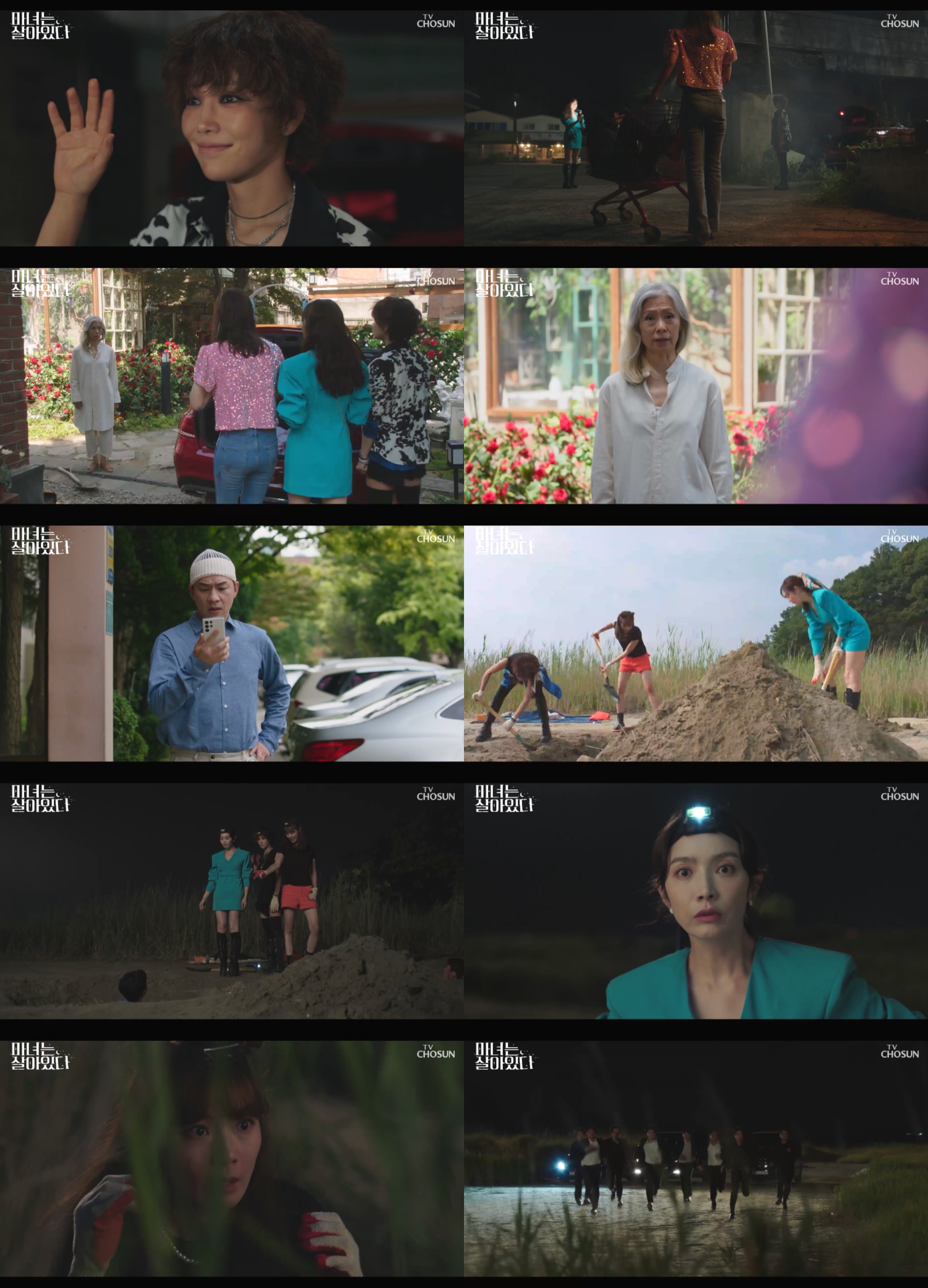 본격적으로 구덩이를 파기 시작한 마리, 진아, 희수. 해가 지도록 땅을 판 세 여자는 3개의 구덩이를 완성한다. 우빈을 다 묻은 그때, 깜깜한 어둠을 뚫고 정체를 알 수 없는 차량 헤드라이트 불빛들이 다가온다.