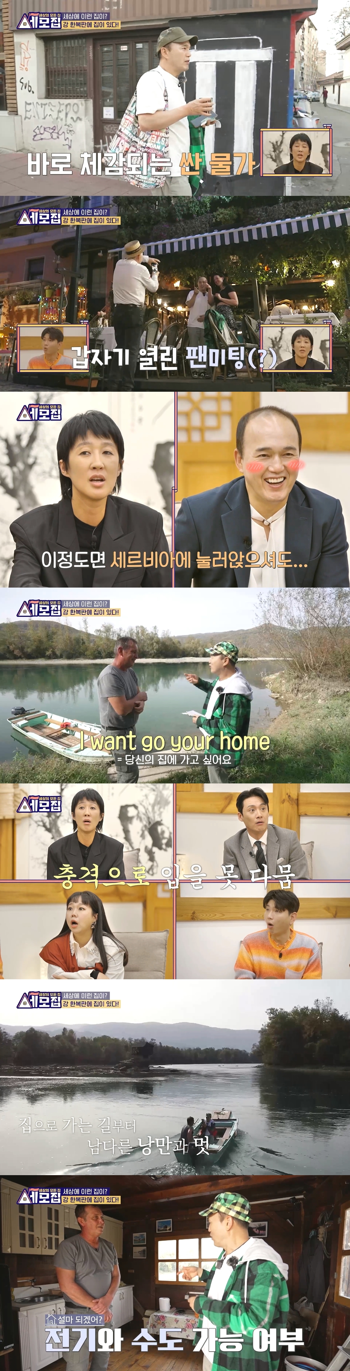 세르비아 수도에서도 3시간 떨어진 곳에 위치한 ‘세모집’ 정체는 이들을 더욱 놀라게 한다. 강 위에 덩그러니 지어진 집의 상상 초월 비주얼에 스튜디오 안 가이드들도 입을 다물지 못했다는 후문. 실제로 이를 본 김광규는 “실제 사람이 사는 집 맞아?”라며 신기해한다.