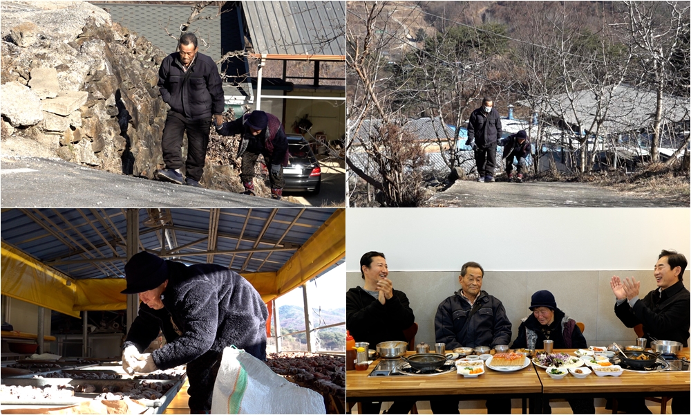 작년 7월, 예천에 쏟아진 폭우로 선자 엄마네는 큰 피해를 입었다. 산 중턱, 냇가 바로 앞에 자리한 집 앞 마당은 물론, 농사짓던 밭까지 모조리 쓸려갔다. 엎친 데 덮친 격으로 올겨울 사과와 호두나무는 냉해까지 입었다. 선자 엄마에게 남은 유일한 수입원은 곶감 농사. 그 어느 해보다 더욱 중요해진 곶감 농사에 엄마는 손이 어는지도 모른 채 곶감 뒤집기에 온 신경을 쏟는다. 허리 펼 새 없이 일하는 엄마의 곁에는 남편 전규찬(78세)이 함께 산다.
